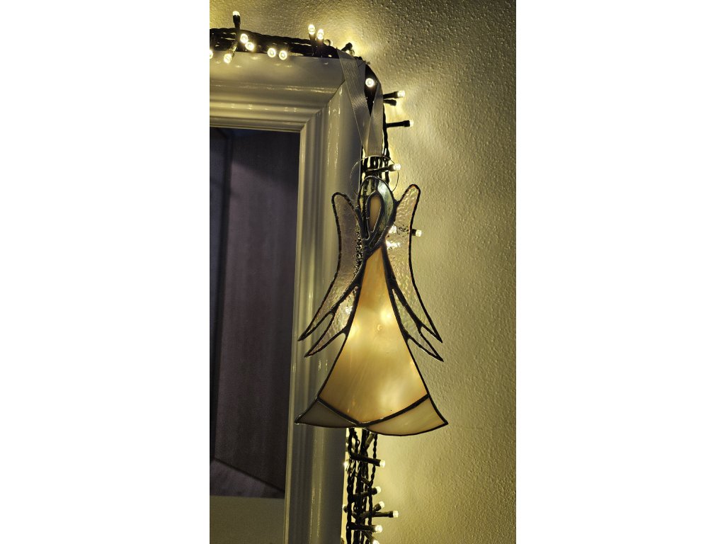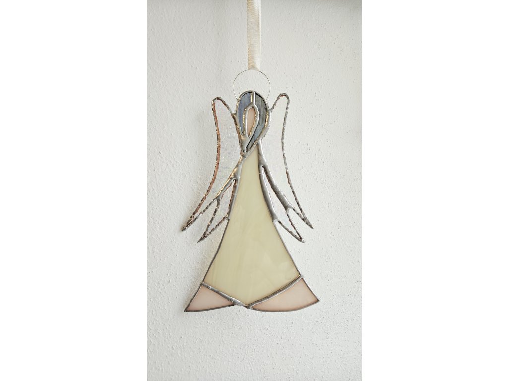 Anděl harmonie symbolizuje vnitřní klid a rovnováhu. Barevné vitrážové sklo jemně odráží světlo a přináší do prostoru pocit pohody.
