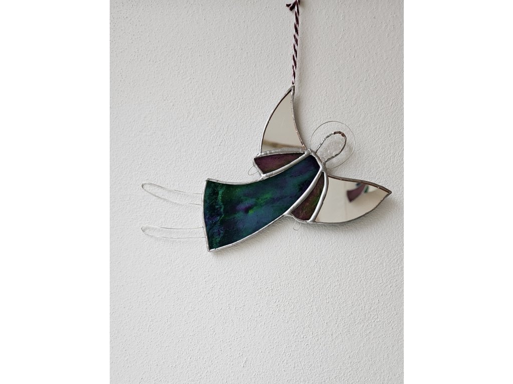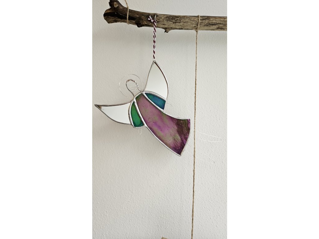 Ručně vyráběný vitrážový anděl, tvořený tradiční Tiffany technikou. Barevné sklo jemně odráží světlo a dodá vašemu domovu pocit harmonie a bezpečí.