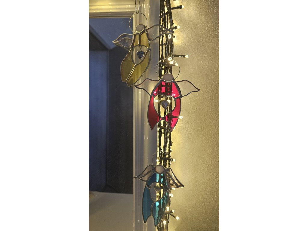 Každý anděl je originál, ručně vyrobený tradiční Tiffany technikou. Barevné sklo se krásně třpytí ve světle a proměňuje každý paprsek v pohádkový odraz.