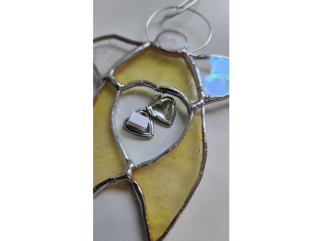 Uprostřed má skleněné srdíčko ❤️, které se dá otevřít – můžete do něj vložit své tajné přání nebo malý vzkaz. Stačí ho svěřit andílkovi… a on už ví, jak s ním naložit ✨