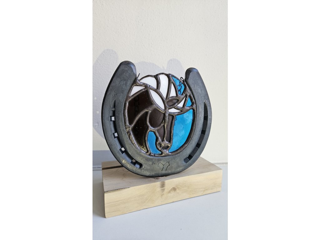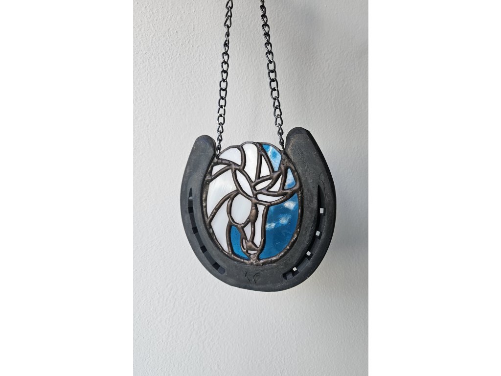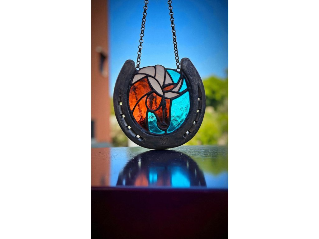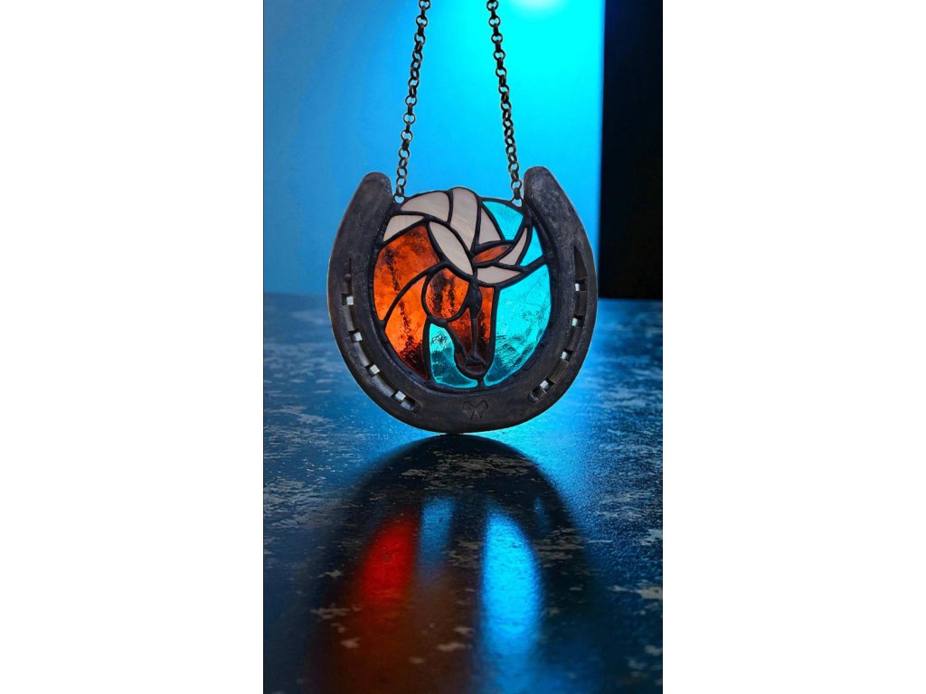 Kůň je symbolem svobody, síly a elegance, zatímco podkova přináší štěstí a ochranu. Tento jedinečný vitrážový amulet spojuje krásu barevného skla a pevnost kovu, čímž vytváří výjimečnou dekoraci plnou energie a harmonie.