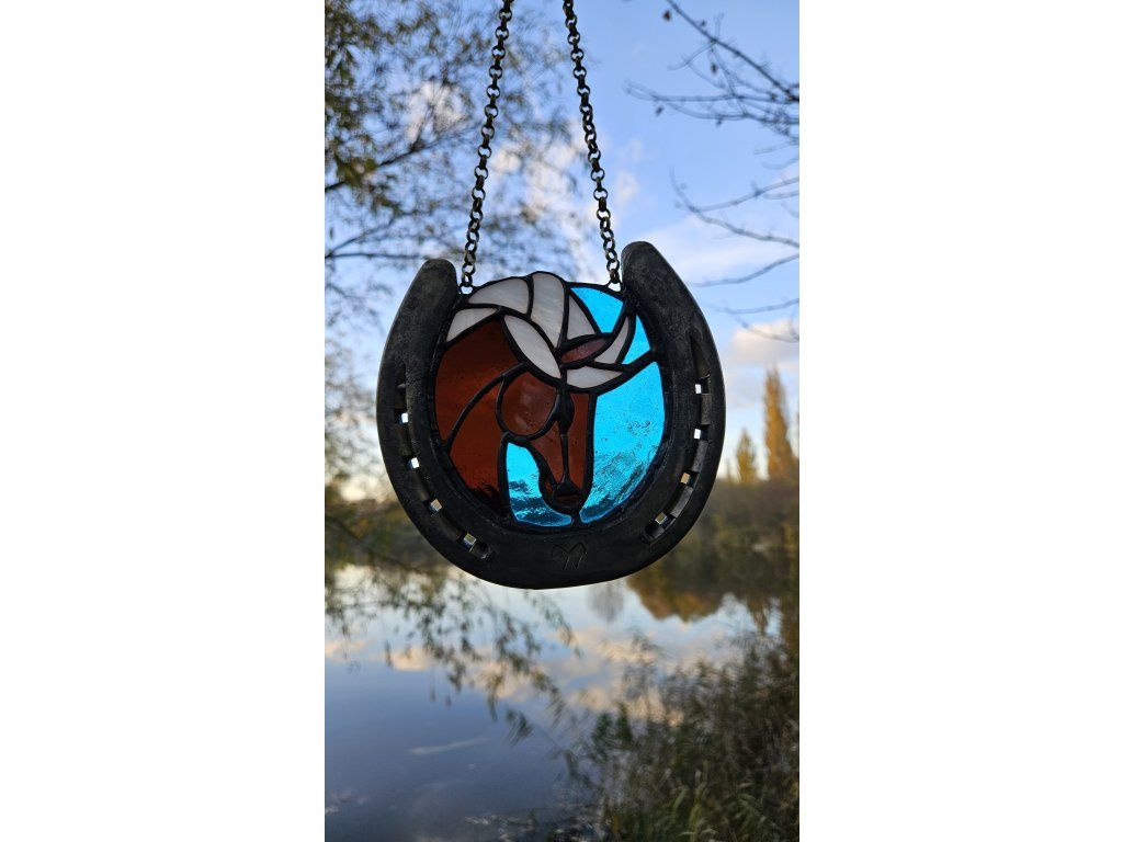 Kůň je odnepaměti symbolem nespoutané svobody a síly, zatímco podkova je tradičním strážcem štěstí. Tento jedinečný vitrážový kousek spojuje oba světy. Kombinace jemného barevného skla a pevného kovu vytváří kontrast, který v interiéru působí harmonicky a energicky 💎🛠️.