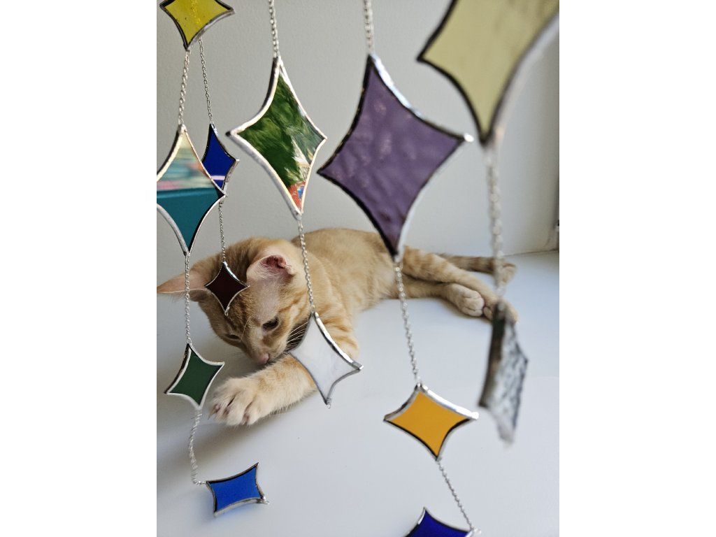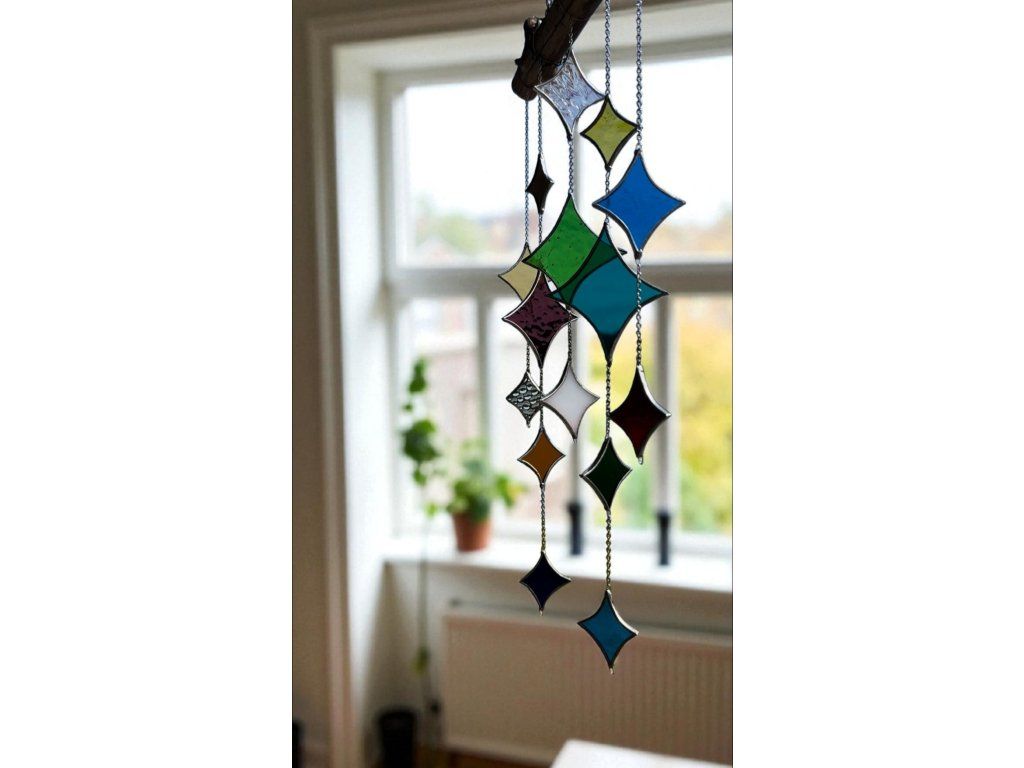 📐 Rozměr: Šířka 22cm,Nejdelší závěs 35cm 🔧 Materiál: Barevné vitrážové sklo, cínová pájka 🖐️ Technika: Tiffany, ruční práce