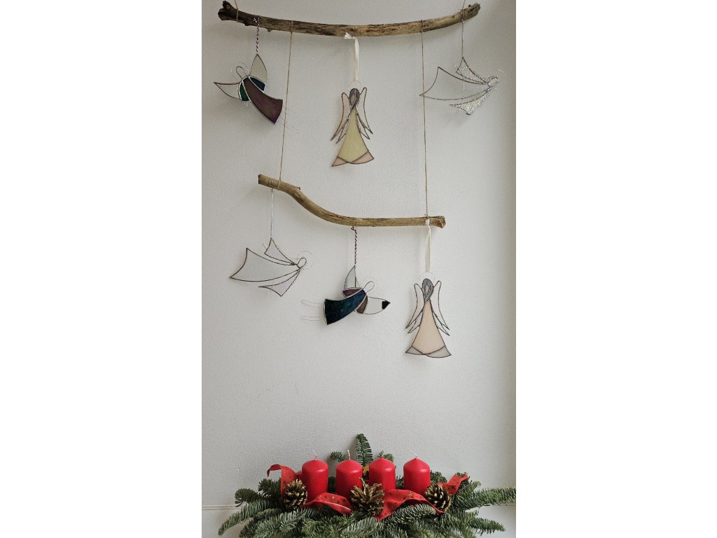 Přineste do svého domova světlo, klid a radost s touto exkluzivní sadou tří ručně vyráběných vitrážových andělů. Každý anděl je jedinečný originál, vytvořený tradiční Tiffany technikou z pečlivě vybraného barevného skla.