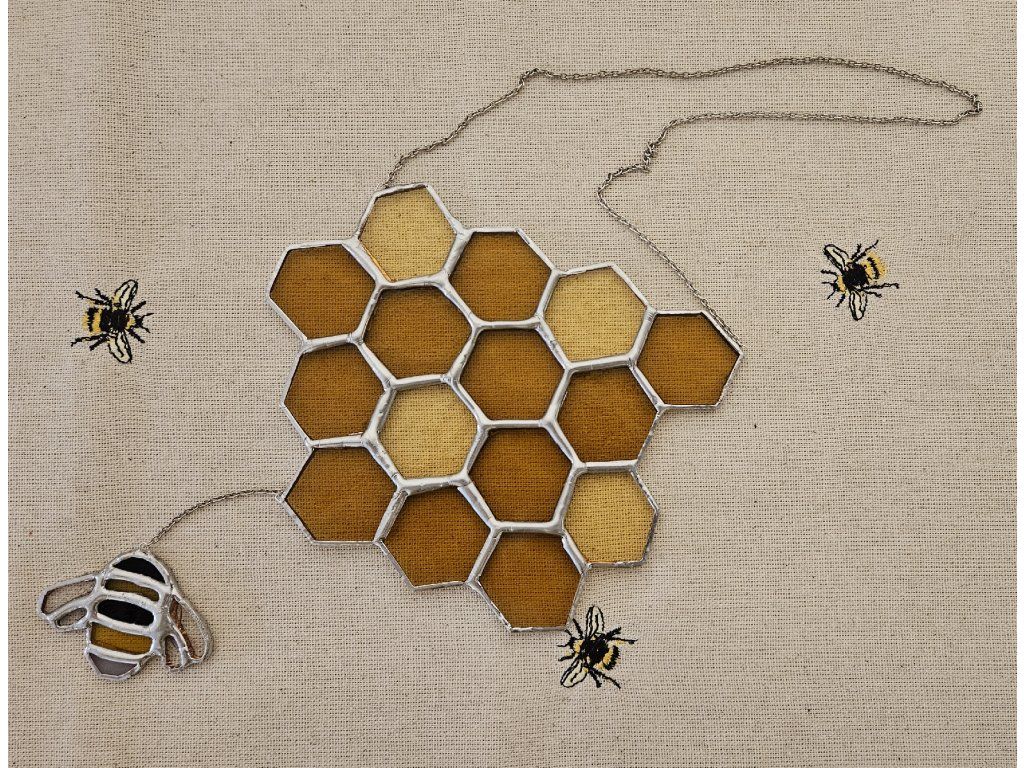 🔹 Každý kousek je originál – Každá buňka plástve je pečlivě vyřezána a sestavena tradiční technikou Tiffany, což zaručuje, že nikdo nebude mít úplně stejný kus.